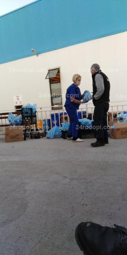На снимките: Работници на входа на „Теклас“ в очакване на автобусите. Раздаване на храна. Снимките са от последната седмица