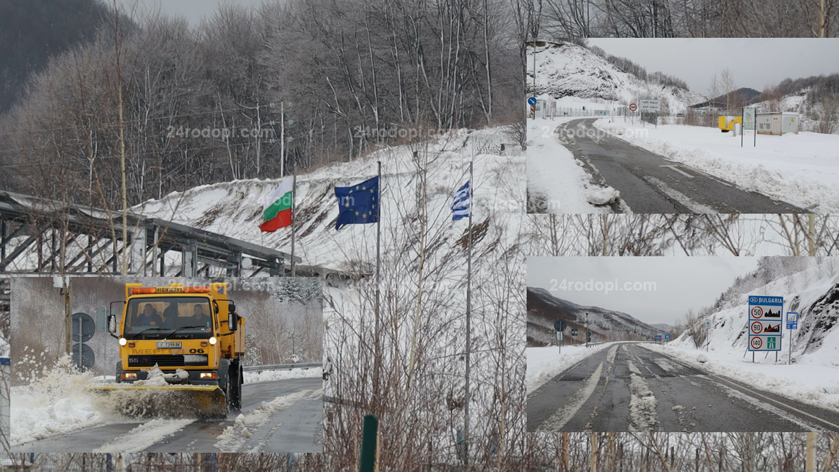 Последен опит на зимата да остане или просто една смразяваща целувка за довиждане. Както и да го тълкуваме, на 8 април районът около ГКПП „Маказа“, портата към плажовете на Гърция, осъмна покрит със сняг. Истинска бяла приказка над хълмовете до границата. Снежната покривка бе между 20 и 30 см, но само встрани от платното. Пътят към пункта бе почистен и проходим. Снегорин разчистваше падналия сняг и в двете посоки, като посипваше и пясък по платното.