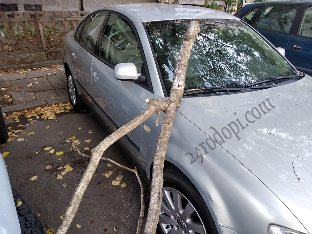 Клон падна върху лек автомобил. Инцидентът стана пред блок „Орфей 1“ във „Веселчане“, предаде репортер на 24rodopi.com.